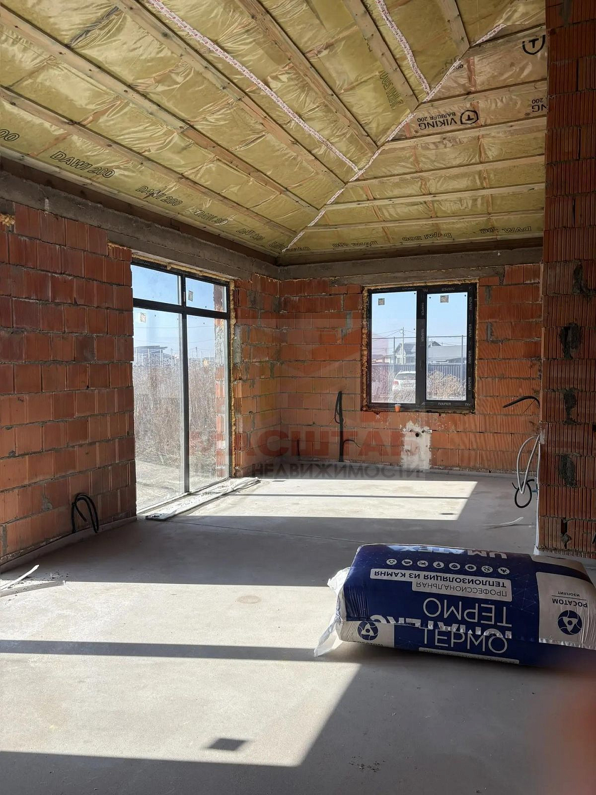 Дом из красного керамического блока, фундамент - плита. В доме собрана котельная (котельная с отдельным входом), разведена электрика, теплые полы, залита стяжка. Установлены септик и скважина, газ заведён на участок.
