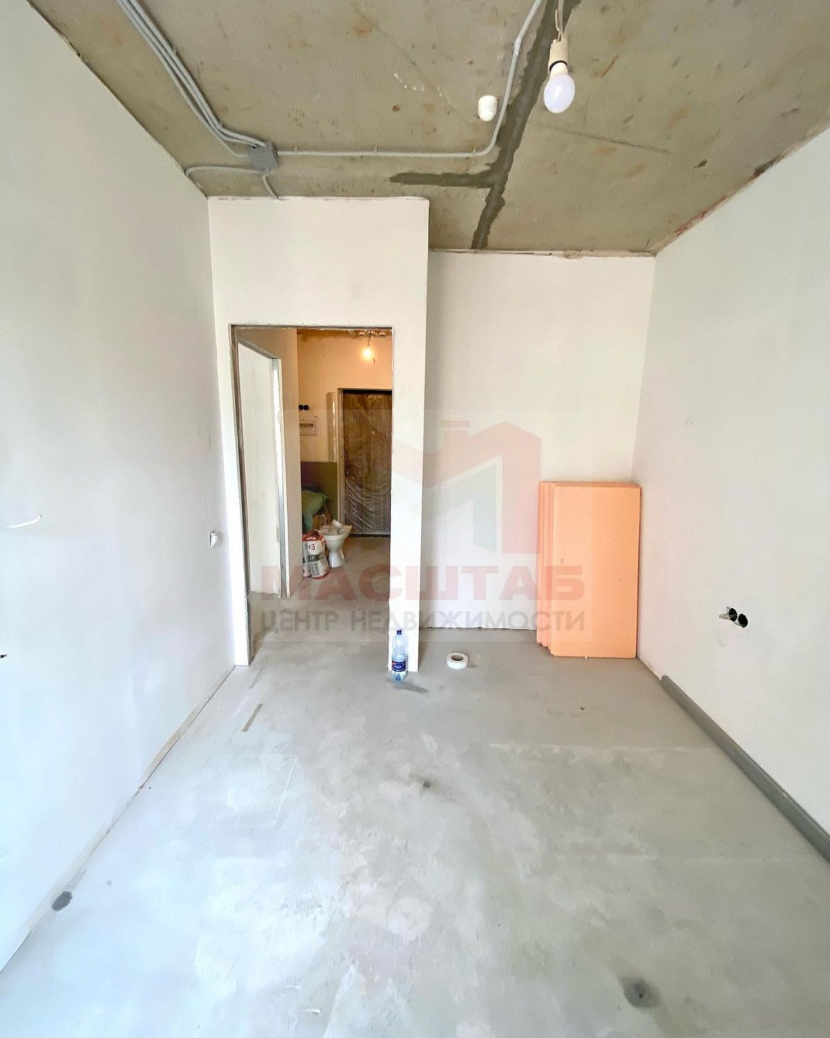 Все стены выровнены, отштукатурены и зашпаклеваны- можно покрывать обоями, полы залиты ровнителем под укладку ламината или кварцвинила.