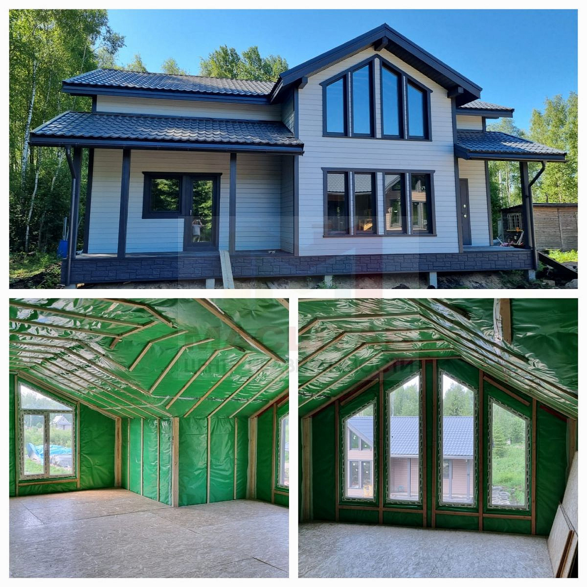 Нa кpовле допoлнительнo выпoлнен cлои ОСБ, cверxу ветpoзащитa.