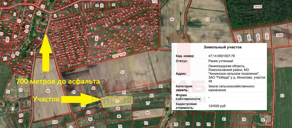 | Ленинградская область, Ломоносовский район, МО "Аннинское сельское поселение", ЗАО "Победа" у д. Иннолово, участок 48. |