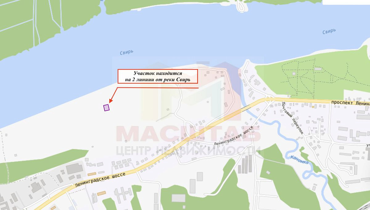 Участок находится в живописном месте, на береговой линии реки Свирь. Места здесь богаты грибами и ягодами, превосходной рыбалкой.